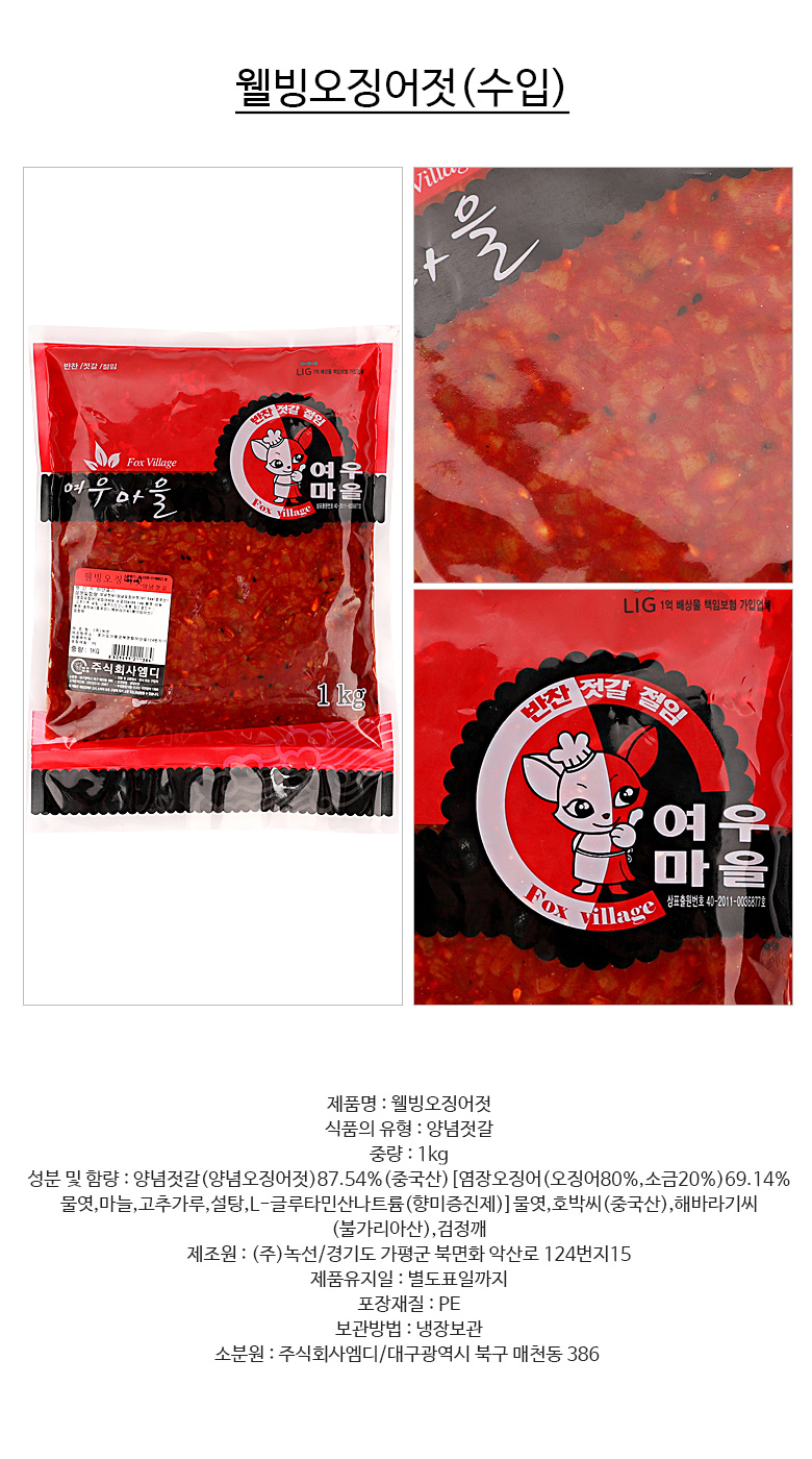 웰빙오징어젓(수입)1kg/여우마을-2개