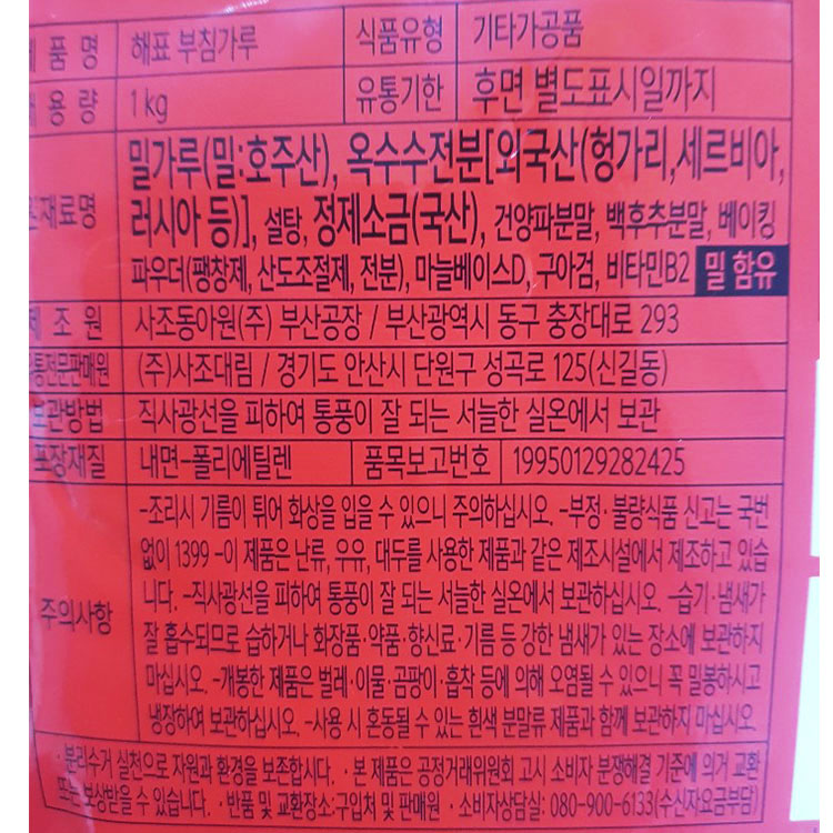 박스/해표부침가루1kg*10-2개