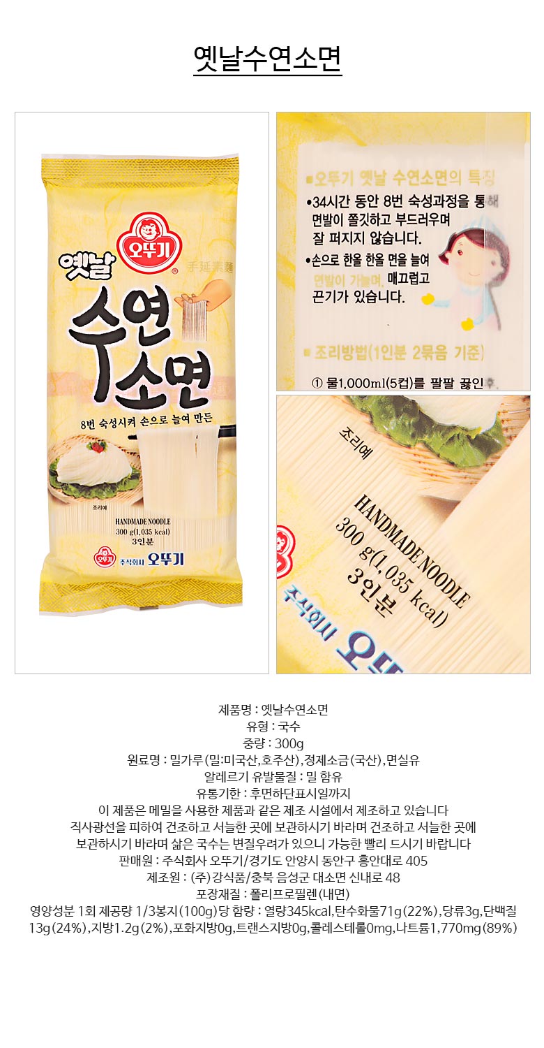 • 옛날수연소면 300G/오뚜기-6개